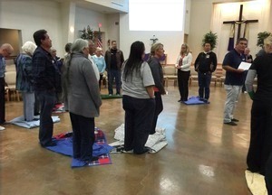 I heard from people who were punished for saying their prayers in their mother tongue. I heard the sorrow in their voices, the hardship and pain it cost and the long journey of finding peace. We facilitated the Blanket exercise last night in a church in Gallup.